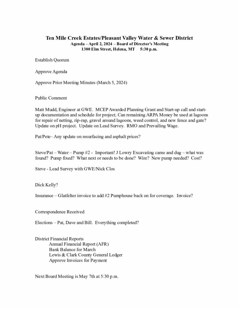 Ten Mile Pleasant Valley Sewer Users Association